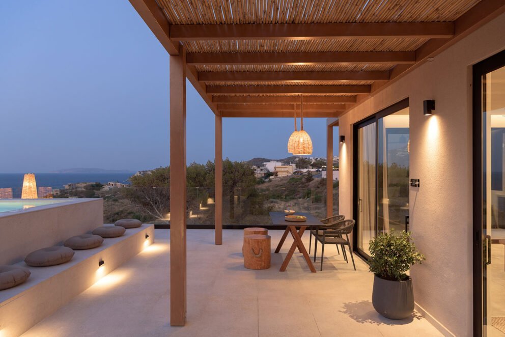 Intimité et luxe minimaliste s’ unissent harmonieusement a’ la nature. Notre suite exécutive Hilltop est unique en ce qui est l’intimité et le luxe. Le calme et le design moderne complètent l’ensemble. Il s’agit d’une expérience unique de repos. Détendez-vous sur la terrasse meublée donnant sur des jardins d’oliviers, de pins et des plantes aromatiques ayant vue sur la mer.