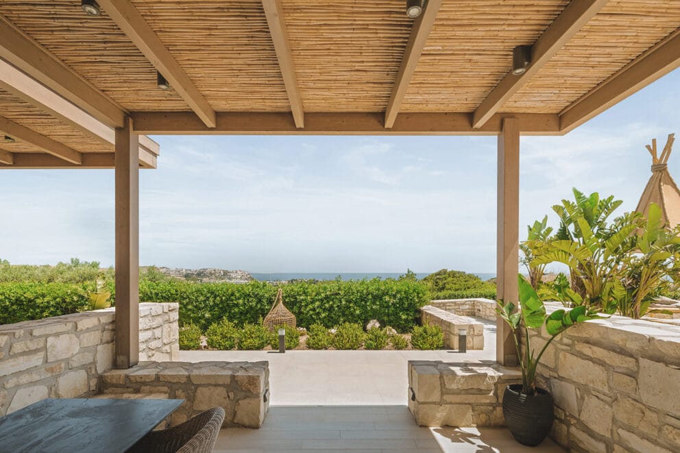Elegant in style and architecture, our Deluxe Apartments welcome guests with exceptional luxury and comfort. Their spacious and fully functional interior with floor-to-ceiling windows gracefully blends natural materials and contemporary details. Taking a step outside awaits a furnished private terrace with view to the pool and the sea offering moments of relaxation and calmness.