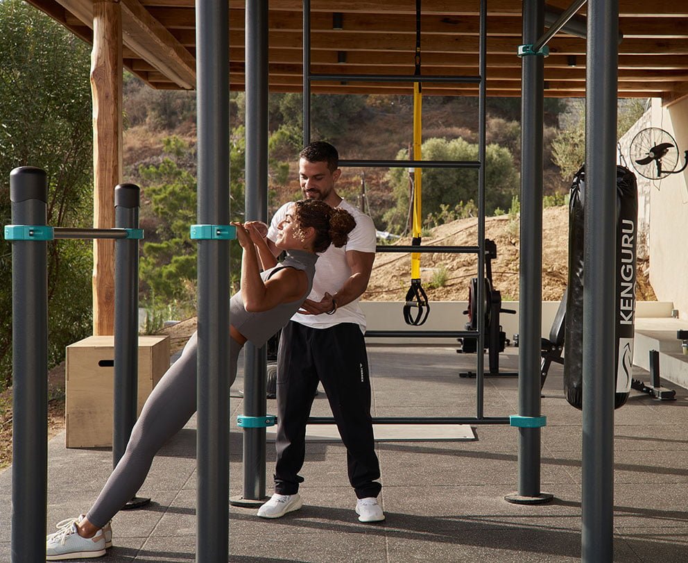 Embrace the open-air energy with free weights and top-notch callisthenics equipment with a mesmerising sea view and sunrise backdrop. Take part in our fitness programs curated by a world-renowned Greek callisthenics athlete, ensuring workouts as invigorating as the coastal breeze. Experience wellness with simplicity, where each exercise is met with the beauty of the Cretan horizon.